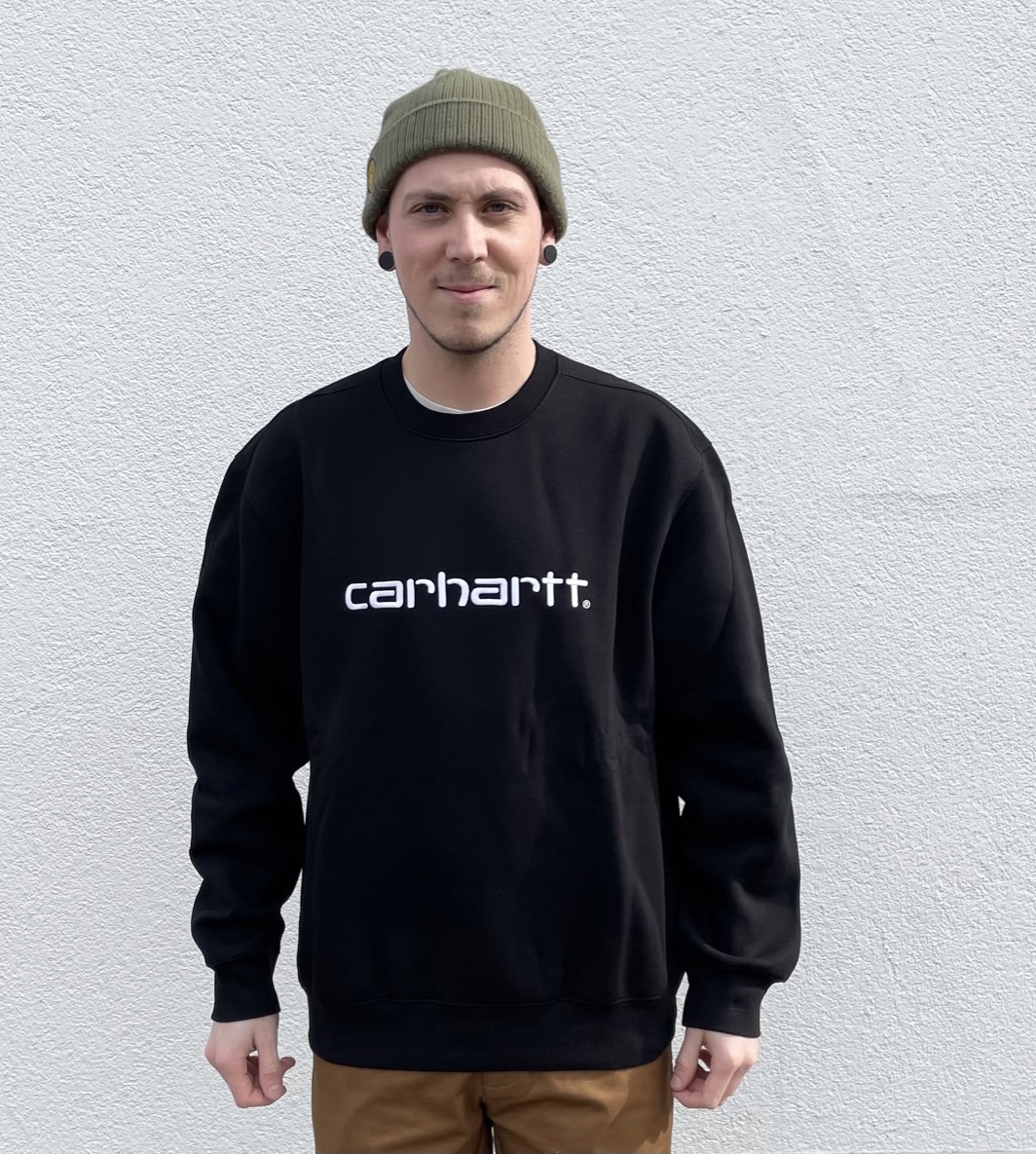 ✓ 13 oz Baumwoll-Polyester-Gewebe ✓ loose fit, Sweatshirt ✓ Carhartt Wip Schriftzug-Stickerei ✓ Carhartt Sweatshirt ✓ I030229_0D2_XX ✓ Black/White