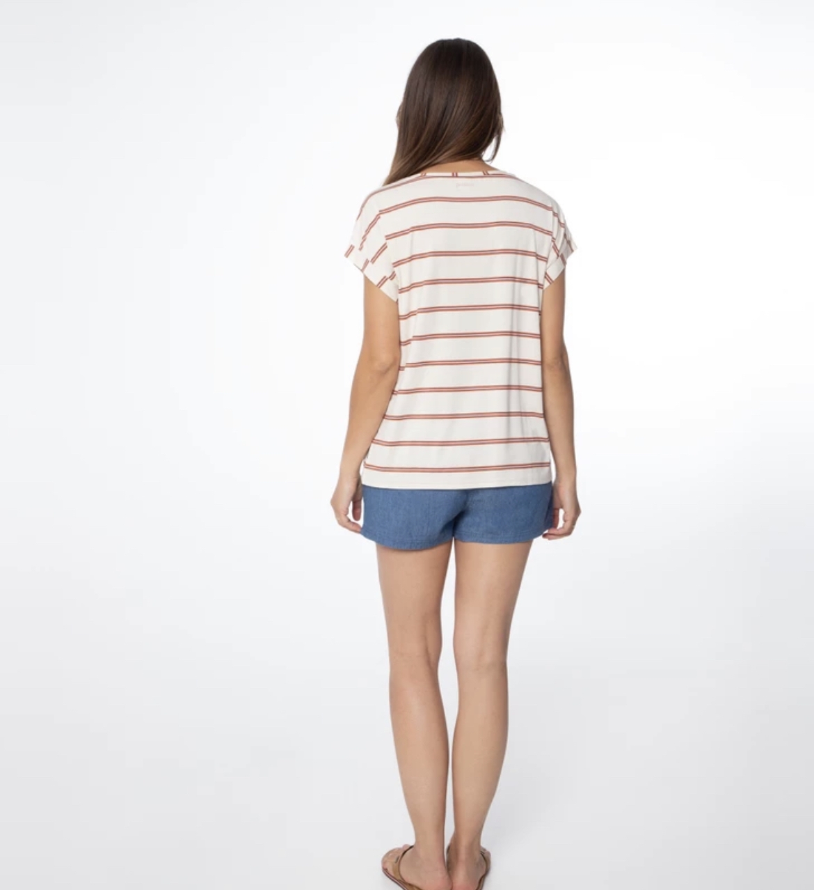 B n✓ Protest T-Shirt Frauen ✓ 95% Baumwolle, 5 % Elasthan ✓ V- Ausschnitt, kurze Ärmel ✓ Regular FIT , Off white ✓ garngefärbte Streifen